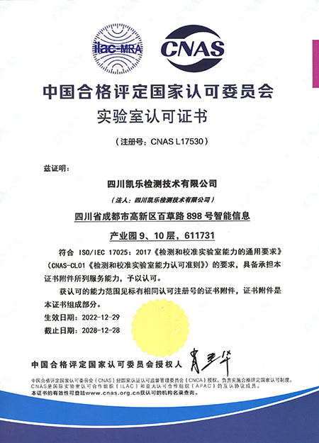 凱樂檢測認證集團成立于2014年4月17日,注冊資金3500萬元,具備檢驗檢測機構(gòu)資質(zhì)認定(CMA)、實驗室認可(CNAS)資質(zhì),全國擁有專業(yè)實驗室約20000㎡,各類大型專業(yè)檢測設備3000余臺,專注提供環(huán)境檢測、二噁英檢測、食品及農(nóng)產(chǎn)品檢測、防雷檢測、公共衛(wèi)生檢測、技術咨詢、環(huán)保管家等一站式綜合服務。